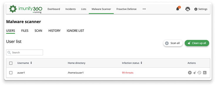 Imunify360 keeps servers free of malware by running real-time and background scans to detect it, then cleaning it up automatically. This prevents the sorts of security issues caused by malware: spam sent out through mail servers, reduced stability and performance, and every sysadmin’s nightmare: broken web sites.